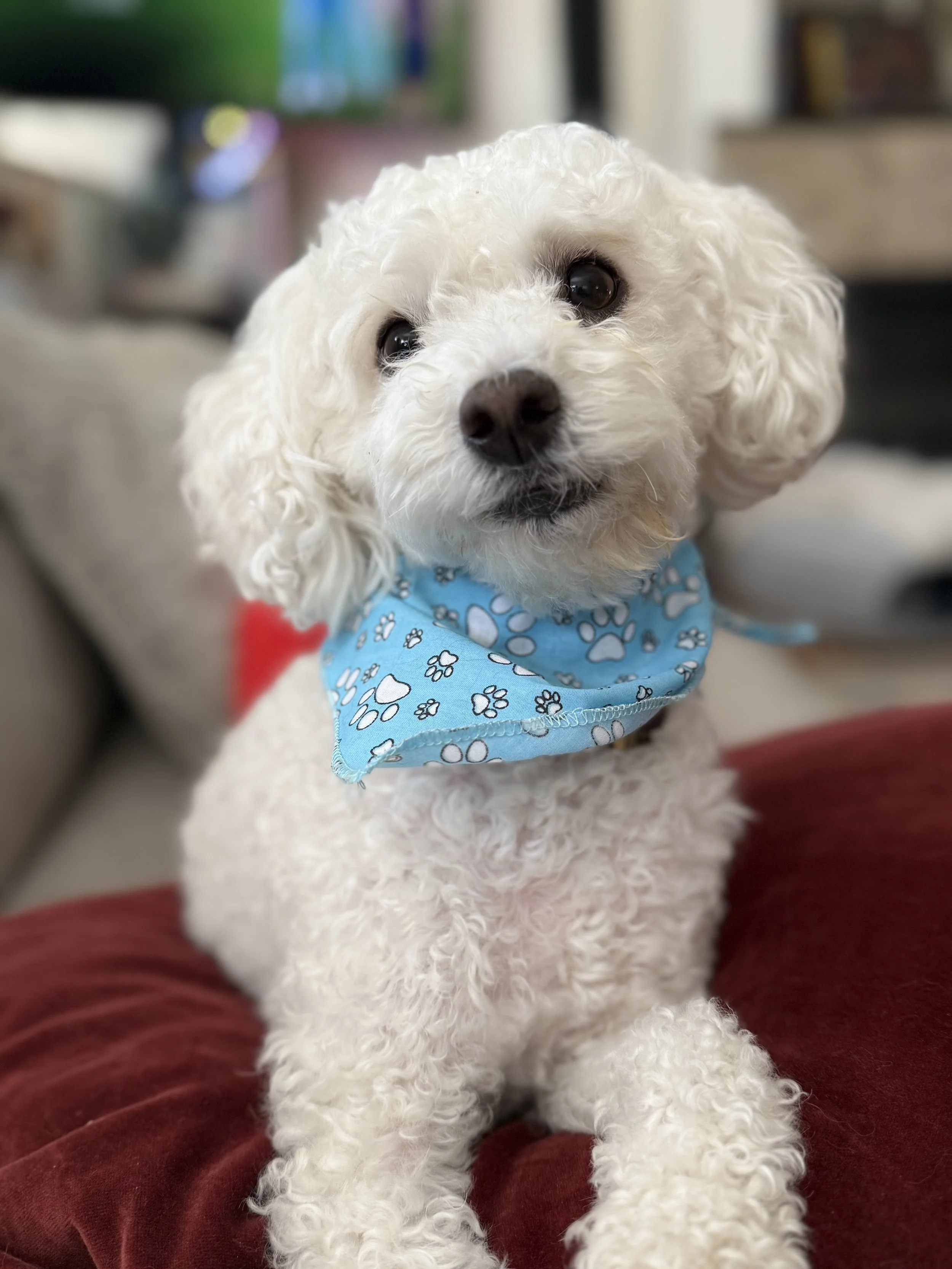 Meatball is a 2.5-year-old Mini Goldendoodle–Bolognese mix, equal parts fluffball and mastermind. Officially, he lives with his landlord Carly, but if you ask him, Carly is his best friend and occasional hostage. His hobbies include hoarding plushie balls, liberating socks directly off people’s feet (why wait for the laundry basket?), and collapsing into laps like a weighted blanket with opinions.